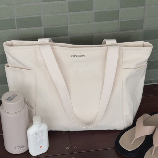 You will soon wonder how you lived without the Charlotte tote bag by Louenhide. This sturdy and spacious bag is perfect to take to the park, to the pool, the beach or even for work! Charlotte is super roomy and features a chunky zip closure, an internal pocket, nice thick shoulder straps, and two generous exterior side pockets that are perfect for a water bottle or on-the-go must-haves.